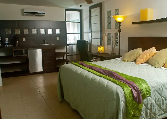 El hotel Art Deco Suites Cancún, de 2 estrellas, se encuentra a 900 metros del Mercado 28, y a 25 minutos a pie del Parque Urbano Kabah.